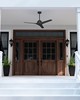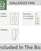 | The Gallegos damp-rated ceiling fan is the must-have modern accent for your covered porch patio or large indoor spaces. Designed to keep your place looking—and feeling—cool all year round the Gallegos delivers a quiet smooth performance in a sophisticated style. Our 3-speed WhisperWind® reversible motor and SureSpeed® Guarantee make this ceiling fan the total package. Modern 3 Matte Black blades included 3 speeds controlled by Wall Control. Installer's Choice® three-position mounting system allows for standard low or angled mounting Includes 2'' downrod to ensure proper distance from the ceiling and optimize air movement" Limited Lifetime Motor Warranty Reversible 3-speed WhisperWind® motor delivers ultra-powerful air movement with whisper-quiet performance so you get the cooling power you want without the noise you don't® Overall Height: 10.59 in Airflow: 5174 CFM Electricity Use: 43 WATTS Airflow Efficeincy: 81 CFM/WATT |