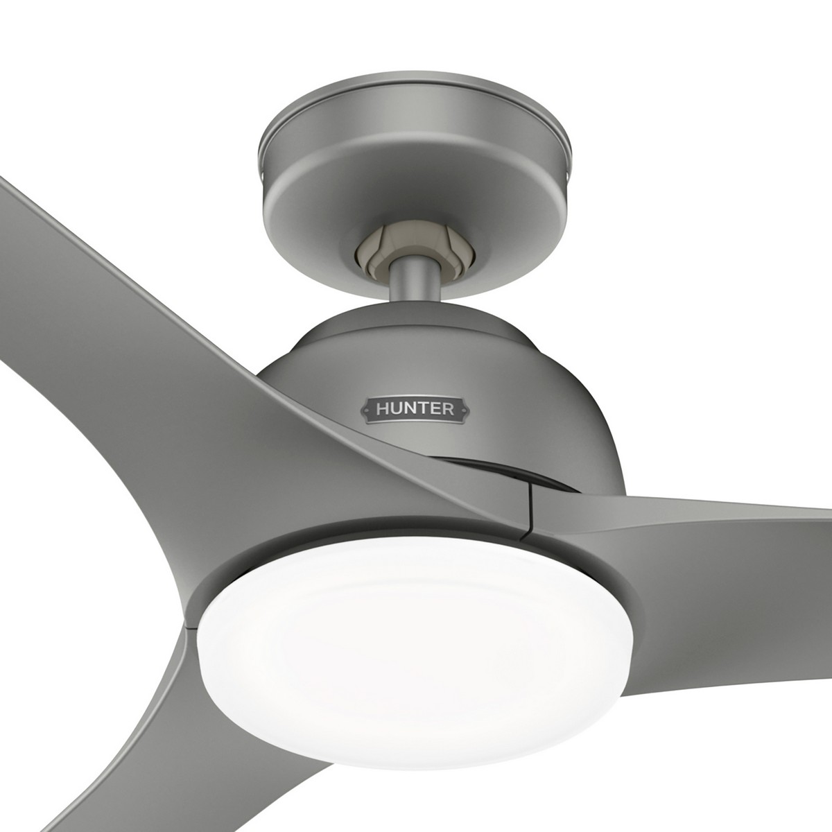 Hunter 52 inch Gallegos Matte Silver Damp Rated Ceiling Fan with LED Light Kit and Wall Control