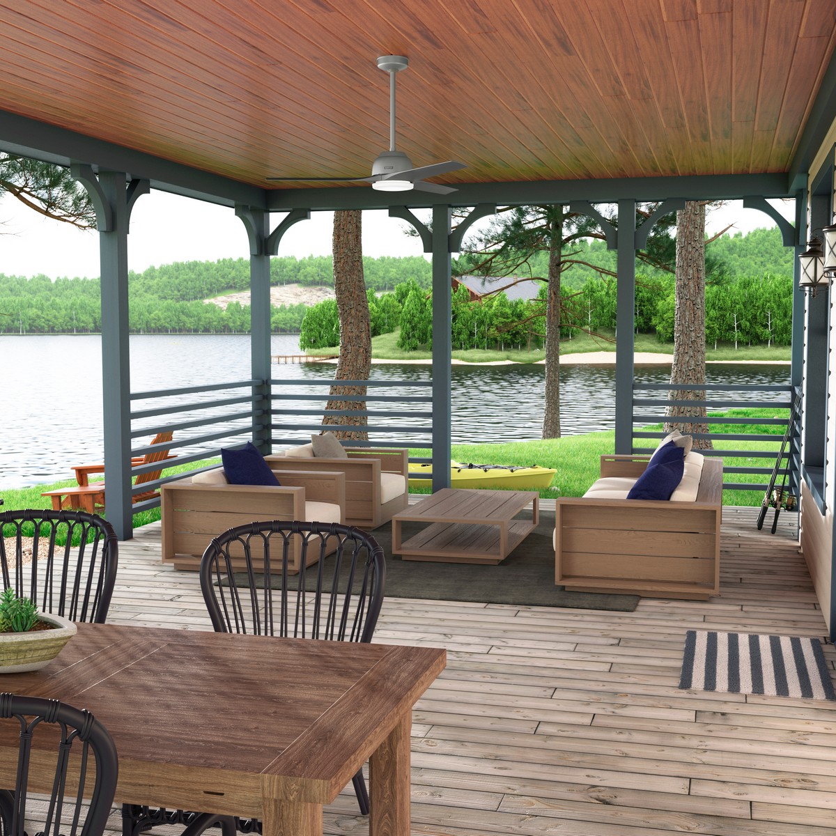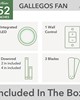 | Our Gallegos damp-rated ceiling fan is a versatile modern beauty. Outfitted with our signature WhisperWind® reversible motor and SureSpeed® Guarantee the Gallegos's sleek design and LED light make it a sure match for any modern motif. Deliver high-speed airflow to your covered patio office or porch year-round with the Gallegos ceiling fan. Modern 3 Matte Silver blades included Light kit features Painted Cased White 100mm Round LED Module | Keetat 18W (New 2022) | KF643 Includes 1 18W LED Module Bulbs. You will love the dimmable light feature. 3 speeds controlled by Wall Control. Installer's Choice® three-position mounting system allows for standard low or angled mounting Includes 2'' downrod to ensure proper distance from the ceiling and optimize air movement" Limited Lifetime Motor Warranty Reversible 3-speed WhisperWind® motor delivers ultra-powerful air movement with whisper-quiet performance so you get the cooling power you want without the noise you don't® Overall Height: 9.97 in Airflow: 5262 CFM Electricity Use: 44 WATTS Airflow Efficeincy: 82 CFM/WATT |