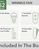 | The Minimus ceiling fan's minimalist design makes it the perfect fit in your modern and transitional spaces. Designed to fit flush in rooms with low ceilings this ultra-low-profile ceiling fan is perfect for small rooms with low ceiling heights. The Minimus ceiling fan boasts a three-speed WhisperWind® motor to deliver powerful efficient airflow. You can easily control the dimmable energy-efficient LED light and fan speeds with the included handheld remote. Casual Modern 3 Matte Black / American Walnut reversible blades included Light kit features Painted Cased White Hunter Platform | Int LED | H&T | 16W Includes 1 16W LED Module Bulbs. You will love the dimmable light feature. 3 speeds controlled by Handheld Remote. Specially designed low-profile housing fits flush to the ceiling making it ideal for use in rooms with low ceilings less than 9' " Limited Lifetime Motor Warranty Reversible 3-speed WhisperWind® motor delivers ultra-powerful air movement with whisper-quiet performance so you get the cooling power you want without the noise you don't® Overall Height: 0 in Airflow: 3634 CFM Electricity Use: 39 WATTS Airflow Efficeincy: 65 CFM/WATT |