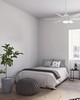 | The alignment and shape of the fan blades give the Sotto modern ceiling fan the feeling of perpetual movement making it a stunning fixture when it's on or off. Built with our SureSpeed® Guarantee the Sotto provides optimized high-speed cooling in bedrooms living rooms and bonus rooms. Casual Transitional Modern 6 Fresh White blades included Light kit features White Cased Shiny A19 DIM Estar Enclosed | Longstar | 9 W | K4870-03 Includes 2 9W LED Bulbs. You will love the dimmable light feature. 3 speeds controlled by Handheld Remote. Installer's Choice® three-position mounting system allows for standard low or angled mounting Includes 3'' downrod to ensure proper distance from the ceiling and optimize air movement" Limited Lifetime Motor Warranty Reversible 3-speed WhisperWind® motor delivers ultra-powerful air movement with whisper-quiet performance so you get the cooling power you want without the noise you don't® Overall Height: 11.47 in Airflow: 5891 CFM Electricity Use: 48 WATTS Airflow Efficeincy: 80 CFM/WATT |
