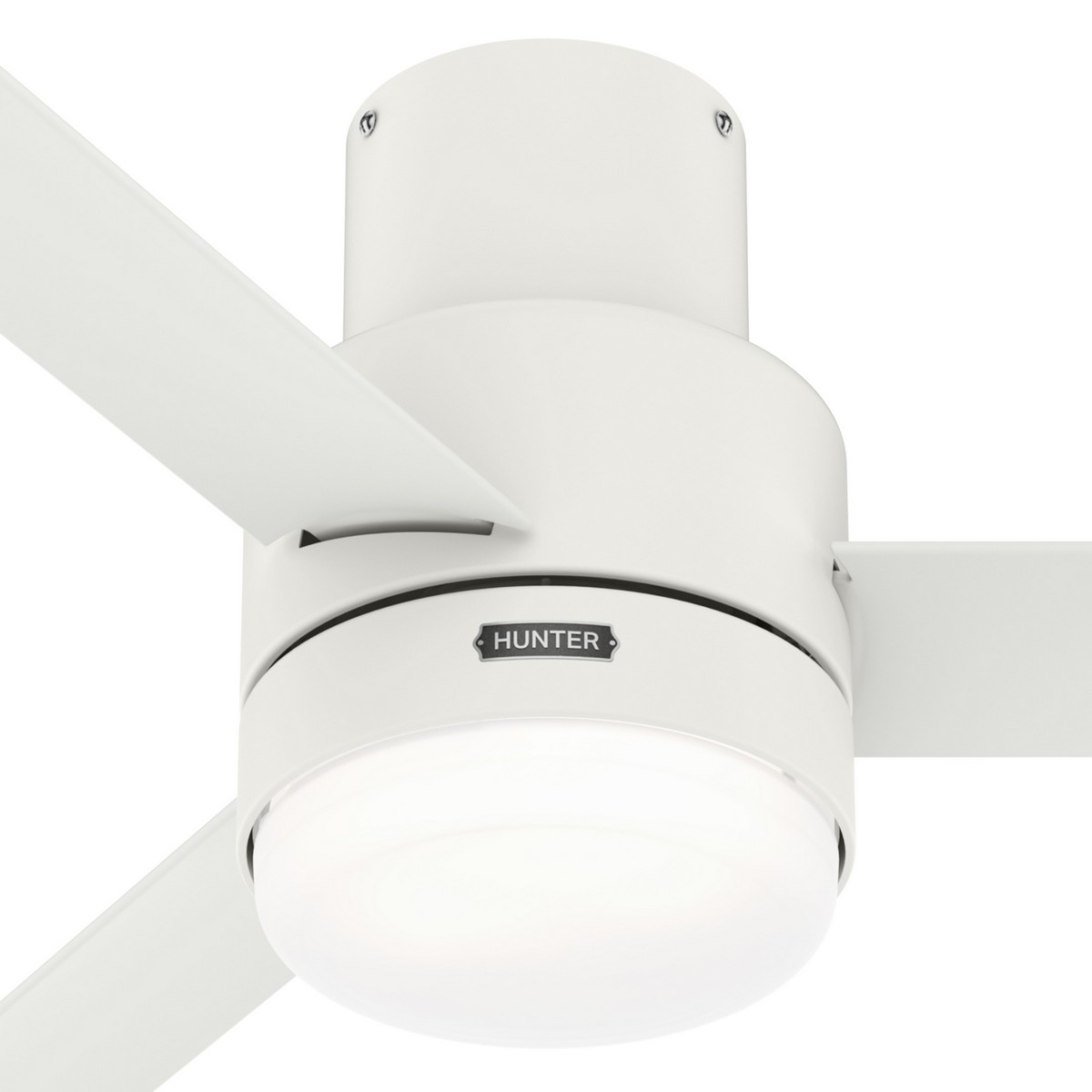Hunter Fan Co Hunter 52 inch Gilmour Matte White Low Profile Damp Rated Ceiling Fan with LED Light Kit and Handhel White