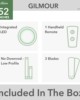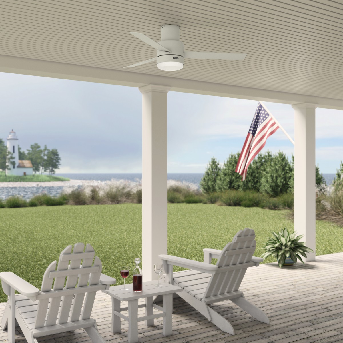 The simple design and clean lines of the Gilmour outdoor ceiling fan complement your casual modern covered porches and patios. The Matte White finish adds a bright clean look while the Flat Matte Black finish adds a bold one. This large ceiling fan fits close to the ceiling to provide optimal performance in rooms with low ceilings without sacrificing style or head room.