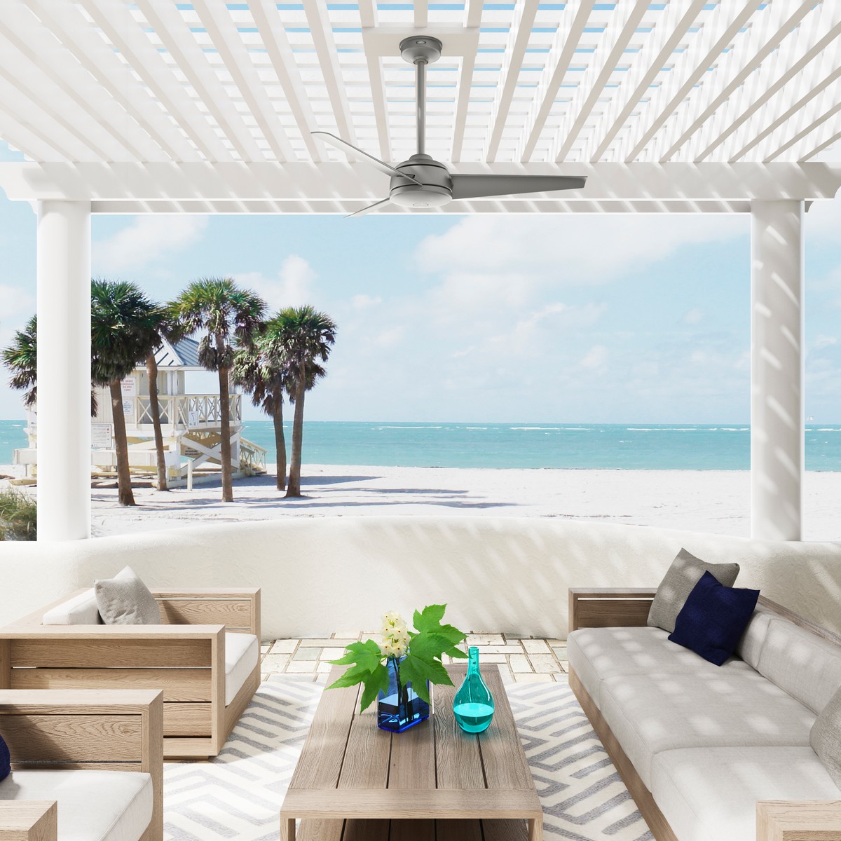 As a part of Hunter's WeatherMax® Collection the Trimaran outdoor ceiling is Engineered for the Elements®. It's wet-rated as well as corrosion and salt-air resistant making it great for outdoor spaces like pergolas and patios. Easily control this ceiling fan without light with the included wall control. Available in classic finishes this modern ceiling fan fits seamlessly in large casual spaces.