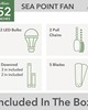 | The Hunter Sea Point ceiling fan is an exercise in industrial elegance. Outfitted with our signature WeatherMax® technology the corrosion-resistant Sea Point is engineered for the elements and tough enough to withstand direct exposure to rain or snow. The perfect pairing for your covered porch or patio this ceiling fan can also grace any indoor space and is built with the cooling capacity for your home's larger living areas. Casual Industrial 5 Matte Silver blades included Light kit features Painted Cased White A15 LED Bulb | 600lm (Non-Dim) | Longstar | 7W | KA305-01 Includes 2 7W LED Bulbs. 3 speeds controlled by pull chain. Installer's Choice® three-position mounting system allows for standard low or angled mounting Includes 3'' downrod to ensure proper distance from the ceiling and optimize air movement" Limited Lifetime Motor Warranty Reversible 3-speed WhisperWind® motor delivers ultra-powerful air movement with whisper-quiet performance so you get the cooling power you want without the noise you don't® Overall Height: 9.69 in Airflow: 5483 CFM Electricity Use: 47 WATTS Airflow Efficeincy: 79 CFM/WATT |