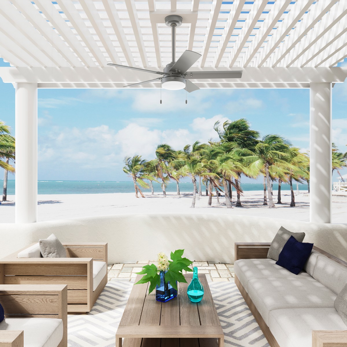 Hunter 52 inch Sea Point Matte Silver WeatherMax Indoor / Outdoor Ceiling Fan with LED Light Kit and