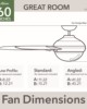 | The Phenomenon's casual modern design lets it fit in any style space while the SIMPLEconnect® Wi-Fi® technology inside lets you control it from anywhere. This smart ceiling fan easily connects to smart home systems like Amazon Alexa Apple HomeKit and Google Home. Built with our SureSpeed Guarantee it delivers optimized high airflow velocity to keep you cool and comfortable. Casual Modern 7 Dark Gray Oak included Light kit features Painted Cased White A19 DIM Estar Enclosed | Longstar | 9 W | K4870-03 Includes 2 9W LED Bulbs. You will love the dimmable light feature. 6 speeds controlled by Wall Control. Installer's Choice® three-position mounting system allows for standard low or angled mounting Includes 3'' downrod to ensure proper distance from the ceiling and optimize air movement" Yes Limited Lifetime Motor Warranty Reversible 6-speed EcoWhisper DC Overall Height: 14.22 in Airflow: 7476 CFM Electricity Use: 25 WATTS Airflow Efficeincy: 191 CFM/WATT |