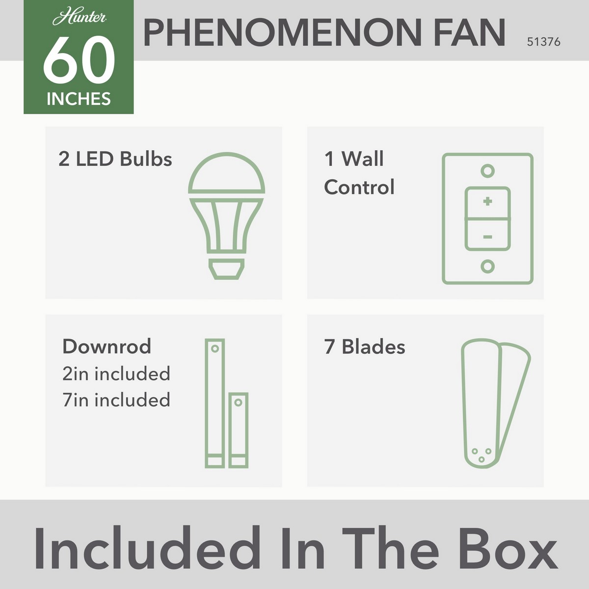 Hunter 60 inch Phenomenon Wi-Fi ENERGY STAR® Matte Black Ceiling Fan with LED Light Kit and Wall