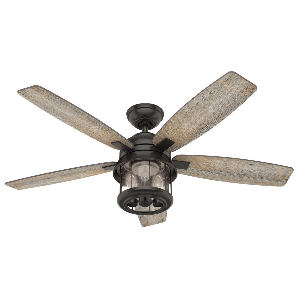 Hunter 52 inch Coral Bay Noble Bronze Damp Rated Ceiling Fan with LED Light Kit and Handheld Remote