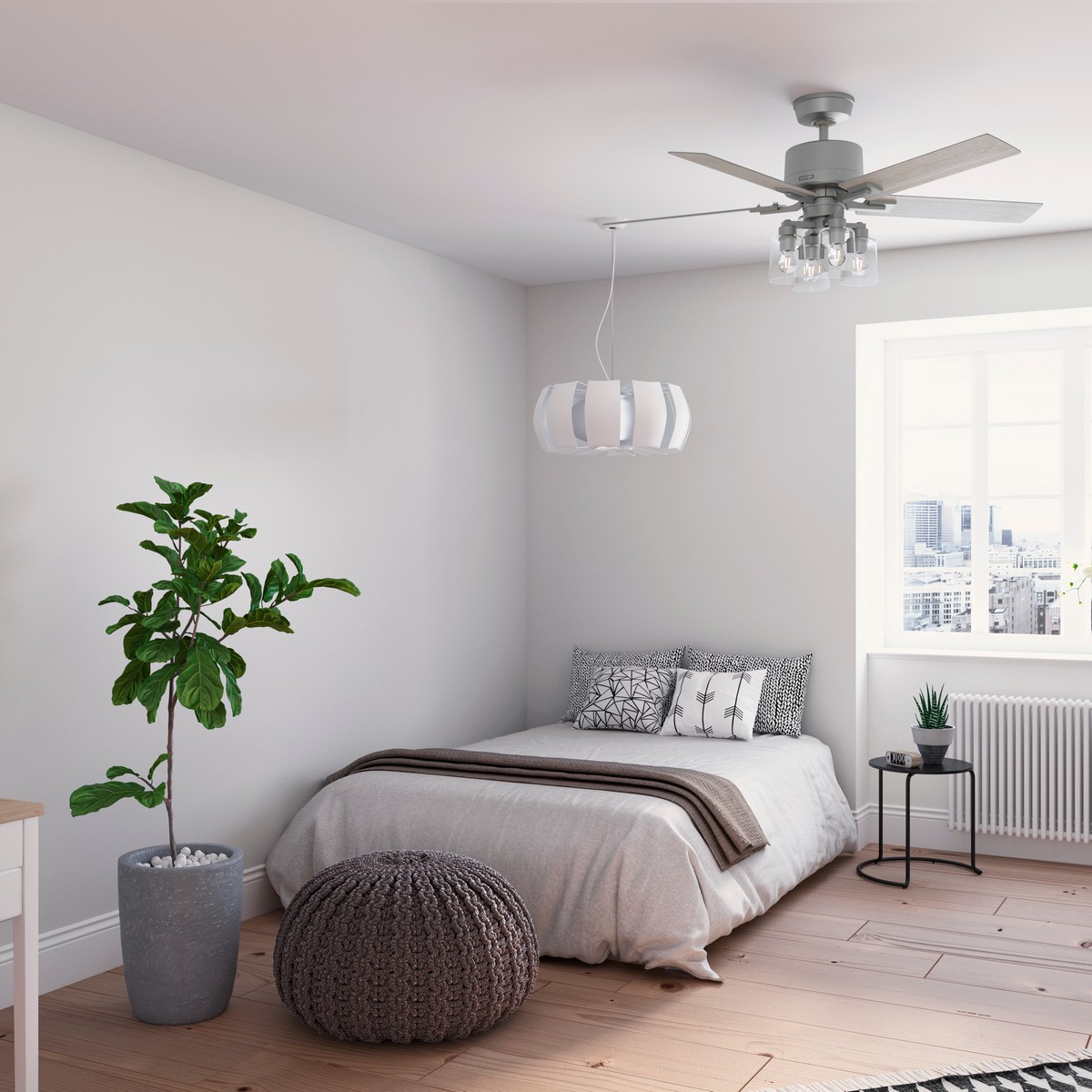 Hunter 52 inch Techne Wi-Fi HunterExpress Matte Silver Ceiling Fan with LED Light Kit and Handheld R