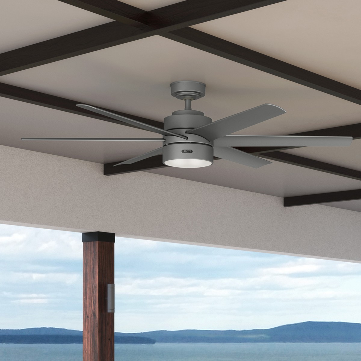 Hunter 60 inch Solaria ENERGY STAR® Matte Silver Damp Rated Ceiling Fan with LED Light Kit and W