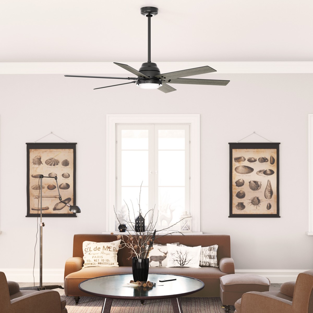 Hunter 60 inch Gravity Wi-Fi ENERGY STAR® Matte Black Ceiling Fan with LED Light Kit and Handhel