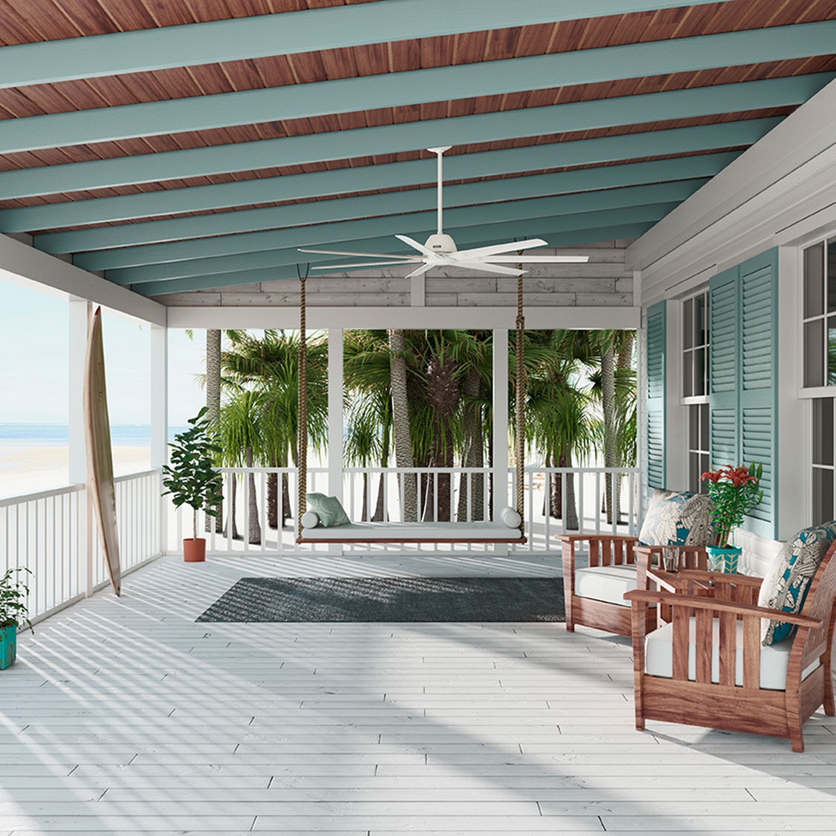| Create a focal point. With its sleek finishes and spanning blades the 72-inch Downtown ceiling fan commands attention in your large indoor and outdoor spaces. This ceiling fan combines modern and industrial styles to form an unforgettable fixture. Plus its clean design makes it the perfect addition to all your spaces – regardless of their style. Industrial Modern 7 Matte White blades included 6 speeds controlled by Wall Control. Installer's Choice® three-position mounting system allows for standard low or angled mounting Includes 3'' downrod to ensure proper distance from the ceiling and optimize air movement" Yes Limited Lifetime Motor Warranty Reversible 6-speed EcoWhisper DC Overall Height: 11.52 in Airflow: 11694 CFM Electricity Use: 27 WATTS Airflow Efficeincy: 290 CFM/WATT |