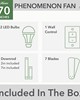 | With a stunning design with a large blade span and modern technology -- this fan's name is well deserved. The Phenomenon is built with our SIMPLEconnect® Wi-Fi® technology to help you easily connect to your smart home systems like Amazon Alexa Apple HomeKit and Google Home. It also comes with our SureSpeed Guarantee for optimized airflow you can feel. The Phenomenon is one cool fan. Casual Modern 7 Bleached Alder included Light kit features Painted Cased White A19 DIM Estar Enclosed | Longstar | 9 W | K4870-03 Includes 2 9W LED Bulbs. You will love the dimmable light feature. 6 speeds controlled by Wall Control. Installer's Choice® three-position mounting system allows for standard low or angled mounting Includes 3'' downrod to ensure proper distance from the ceiling and optimize air movement" Yes Limited Lifetime Motor Warranty Reversible 6-speed EcoWhisper DC Overall Height: 14.22 in Airflow: 11319 CFM Electricity Use: 24 WATTS Airflow Efficeincy: 307 CFM/WATT |
