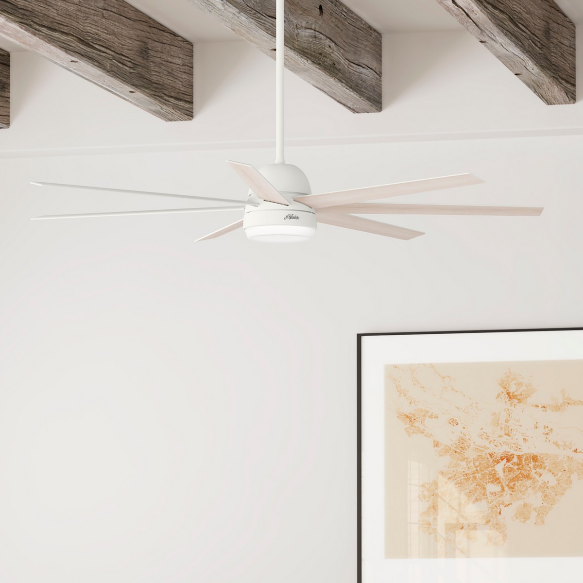 Hunter 70 inch Phenomenon Wi-Fi ENERGY STAR® Matte White Ceiling Fan with LED Light Kit and Wall