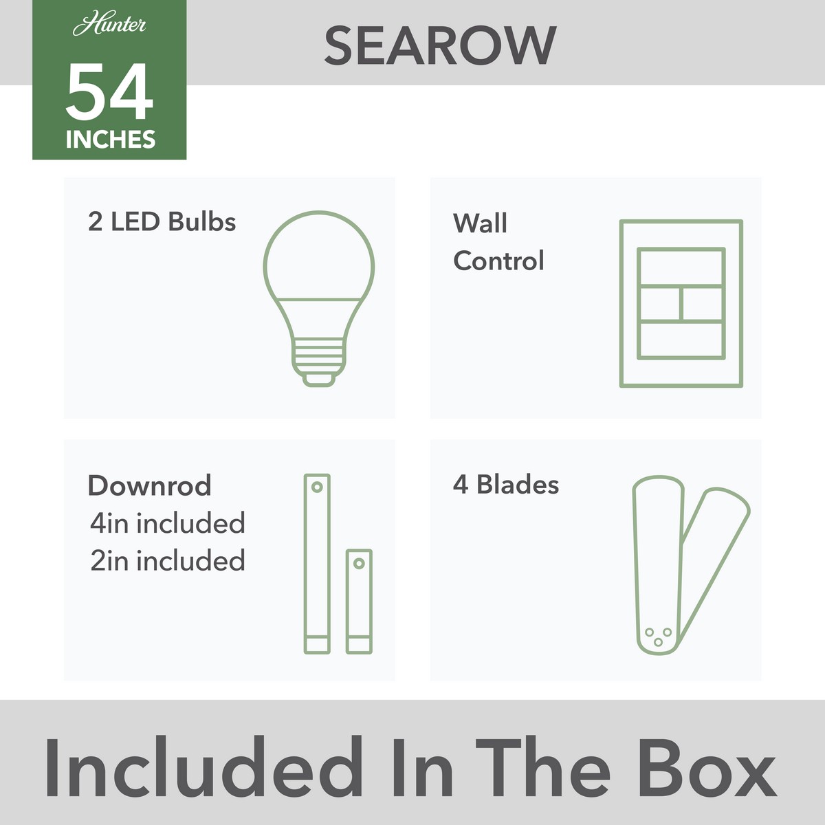 As a part of Hunter's WeatherMax® Collection the Searow outdoor ceiling is Engineered for the Elements®. It's wet-rated as well as corrosion and salt-air resistant making it great for outdoor spaces directly exposed to the elements. The pre-installed control receiver makes installation simple and it's pre-paired to the included wall control so you're ready to use the fan. The lantern-inspired ceiling fan completes the look of a modern farmhouse and coastal-style spaces.