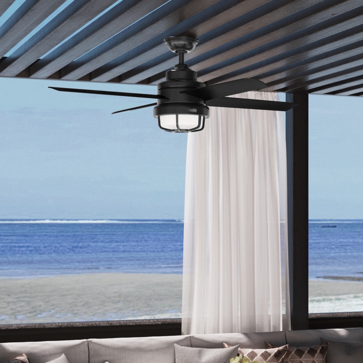 Hunter Fan Co Hunter 54 inch Searow Matte Black WeatherMax Indoor / Outdoor Ceiling Fan with LED Light Kit and Wal Black