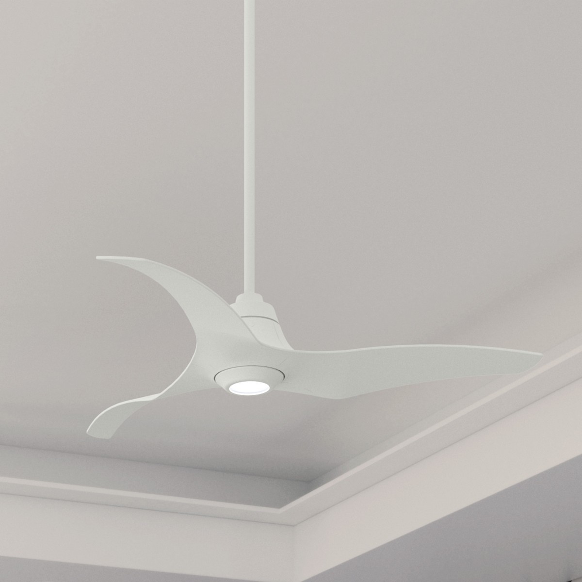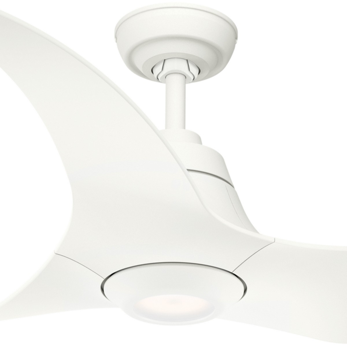 | With no visible screws or fasteners the Arwen ceiling fan design gives a sense that every element is connected and working together seamlessly. Like a freeze-frame of aquatic motion the flowing nature of the Arwens' aesthetics makes it appear almost weightless. Combine that with the finishes that are available and the simplicity of its appearance and you have an elegant piece for your modern bedroom that is truly unique. As a Hunter ENERGY STAR® certified ceiling fan the Arwen is 64% more efficient on average than conventional fans* while helping you save you money on cooling costs. Modern 3 Matte White blades included Light kit features Painted Cased White Hunter Small | Int'l LED | Foxconn | 17W | KA852 Includes 1 18W LED Module Bulbs. You will love the dimmable light feature. 6 speeds controlled by Integrated Control System - Handheld. Installer's Choice® three-position mounting system allows for standard low or angled mounting Includes 2'' downrod to ensure proper distance from the ceiling and optimize air movement" Yes Limited Lifetime Motor Warranty Reversible 6-speed EcoWhisper DC Overall Height: 11.36 in Airflow: 6659 CFM Electricity Use: 19 WATTS Airflow Efficeincy: 234 CFM/WATT |
