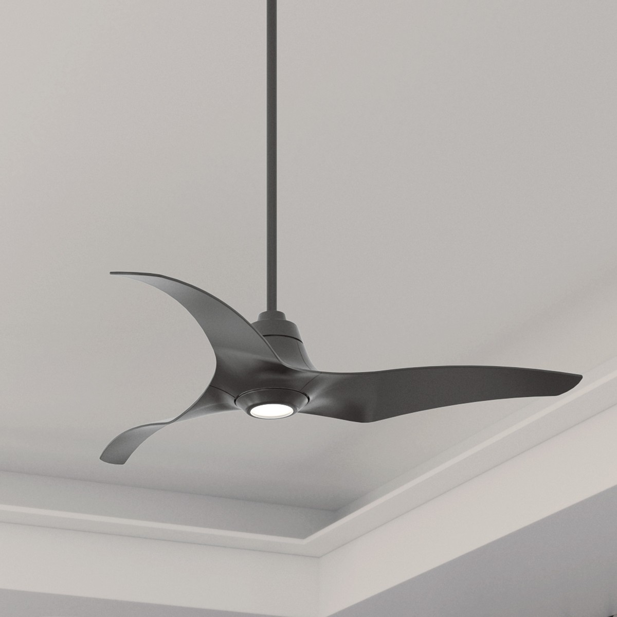 With no visible screws or fasteners the Arwen ceiling fan design gives a sense that every element is connected and working together seamlessly. Like a freeze-frame of aquatic motion the flowing nature of the Arwens' aesthetics makes it appear almost weightless. Combine that with the finishes that are available and the simplicity of its appearance and you have an elegant piece for your modern bedroom that is truly unique. As a Hunter ENERGY STAR® certified ceiling fan the Arwen is 64% more efficient on average than conventional fans* while helping you save you money on cooling costs.