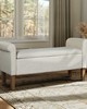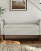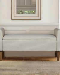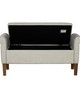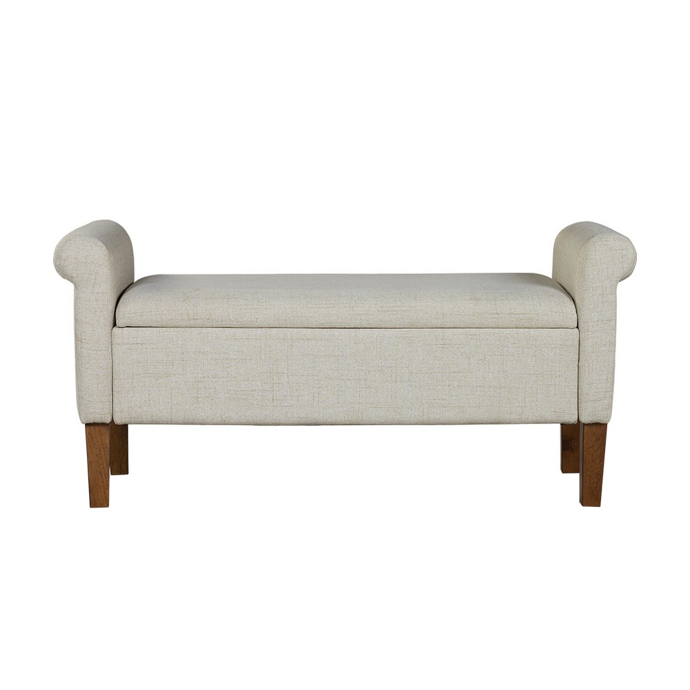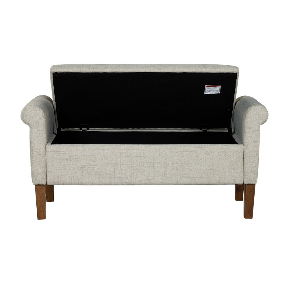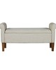 | 510 Design See below Overall: 46"W x 17.5"D x 22"H Seat: 38"W x 17.5"D x 18"H Arm Size: 38"W x 22"H Leg Height: 7"H Storage Space: 36"W x 15.5"D x 7"H Weight Capacity: 400lbs Frame Composition: Solid wood and plywood and MDF Leg Material: Solid wood Wood Finish: Medium Walnut Fabric Composition: 100% Polyester Seat Construction: Plywood and Foam Cushion or Upholstery Fill Material: Foam Transitional Modern Style Includes 1 Piece(s) • To protect the finish, do not apply abrasive cleaners. • Wipe clean with damp cloth • Hardware may loosen over time. Periodically check and re-tighten connections. Elevate your space with the timeless appeal of the 510 Design Aubrey Storage Bench. Blending transitional style with practicality, this bench boasts rolled armrests and is fully upholstered for a touch of sophistication. Enjoy comfort with its foam-filled seat cushion and stay organized with ample storage space under the flip-top seat. Crafted with a sturdy solid wood and plywood frame, complemented by solid wood legs, it's perfect for any room. Easy leg assembly with included tool makes it a hassle-free addition to your home. Redefine your decor with transitional elegance and functionality! |