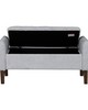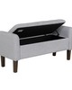 | 510 Design See below Overall: 44"W x 17.5"D x 22"H Seat: 38"W x 17.5"D x 18"H Storage: 35.5"W x 15"D x 7"H Arm: 38"W x 22"H Leg: 7"H Weight Capacity: 400 lbs Frame Composition: Plywood Leg Material: Solid wood Arm Material: Plywood Fabric Composition: 100% polyester, woven Cushion or Upholstery Fill Material: Foam Wood Finish: Dark coffee Transitional Modern Style Includes 1 Piece(s) Spot clean Elevate your space with our transitional storage ottoman bench. The clean lines, curved arms, and ample storage space make it perfect for modern and contemporary entryways, bedrooms, and guest rooms. The solid wood and plywood frame and legs, polyester-blend upholstery, and foam-filled seat cushion make it sturdy and durable. The storage space beneath the cushion and safe flip-top hardware add convenience. Plus, tool-less assembly makes it easy to set up. |