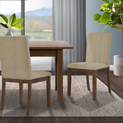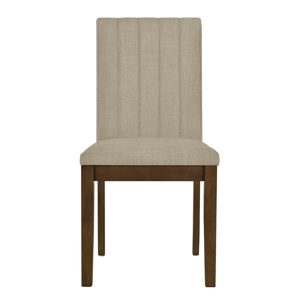 Upgrade your dining space with the set of two transitional Parsons style dining chairs. With a wide channel back and plain seat details, the contemporary design is both stylish and comfortable. The armless design is space-saving and allows for easy tucking underneath dining tables. Sturdy wood base and solid legs. Simple assembly required.