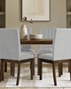 | 510 Design See below 2 Chairs: 19.50"W x 24"D x 38.50"H (2) Seat: 19.5"W x 18"D x 20"H Leg: 17.25"H Back Rest: 17"W x 18.5"H Weight Capacity: 300 lbs Frame Composition: Solid wood Front Leg Material: Solid wood Back Leg Material: Plywood Fabric Composition: 100% polyester, woven Cushion or Upholstery Fill Material: Foam Wood Finish: Medium walnut Transitional Modern Style Includes 2 Piece(s) Spot clean Upgrade your dining space with the set of two transitional Parsons style dining chairs. With a wide channel back and plain seat details, the contemporary design is both stylish and comfortable. The armless design is space-saving and allows for easy tucking underneath dining tables. Sturdy wood base and solid legs. Simple assembly required. |