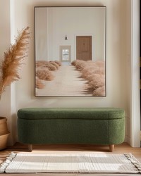 | Ink+ivy See below Overall: 48"W x 16.5"D x18"H Leg Height: 3.5" Storage: 43.75"W x 10.25-11.75"D x 10"H Weight: 27.5 lbs Weight Capacity: 400 lbs Frame Composition: Solid wood and plywood Leg Material: Solid wood Fabric Composition: 100% polyester, plain weave Cushion or Upholstery Fill Material: Foam Wood Finish: Elm smooth Casual Style Includes 1 Piece(s) Spot clean Introducing the Bailey boucle flip top storage bench from Ink+Ivy - a stylish and versatile piece that fits seamlessly into any room of your home. Featuring clean lines and a curved front, it also has a straight back that fits snugly against a wall or bed. The upholstered bench sits atop solid wood legs, providing both comfort and style. And with only leg assembly required, it's easy to set up and start using. |
