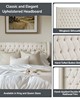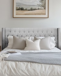 | Madison Park King 1 Overall Size: 84.50"W x 8.50"D x 54.25"H Headboard: 84.50"W x 54.25"H x 8.50"T Horizontal Distance Between Predrilled Holes: 74.75" Height of Predrilled Holes from Floor: 39.25" Distance From Bottom of Headboard to Floor: 21.25" The Interior Dimen Material: Plywood frame and metal legs Frame Material: Wood Leg Material: Metal Fabrication: 100% Polyester Upholstery Fill Material: Foam Metal leg finish: Black Nailheads: Antique silver Transitional Modern Style Includes 1 Piece(s) Spot Clean Elevate your bedroom with the Madison Park Amelia Upholstered Headboard, a statement piece designed for timeless sophistication. Featuring a classic wingback silhouette, hand-tufted plush button detailing, and a double row of individually applied nailhead trim, this headboard exudes elegance. Upholstered in soft, durable fabric with foam padding for extra comfort, it provides a cozy backdrop for reading or relaxing. Ideal for modern, transitional, and classic décor styles, Amelia transforms any space. Upgrade your bedroom today! |