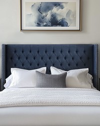 | Madison Park King 1 Overall Size: 84.50"W x 8.50"D x 54.25"H Headboard Size: 84.5"W x 54.25"H x 8.5"T Horizontal Distance Between Predrilled Holes: 74.75" Height of Predrilled Holes from Floor: 39.25" Distance From Bottom of Headboard to Floor: 21.25" Interior dimens Material:Plywood frame, metal legs, upholstered headboard Frame Material: Wood Leg Material: Metal Fabric Composition: 100% Polyester Upholstery Fill Material: Foam Metal Finish: Black Nailheads: Matte silver Transitional Modern Style Includes 1 Piece(s) Spot Clean Elevate your bedroom with the Madison Park Amelia Upholstered Headboard, a statement piece designed for timeless sophistication. Featuring a classic wingback silhouette, hand-tufted plush button detailing, and a double row of individually applied nailhead trim, this headboard exudes elegance. Upholstered in soft, durable fabric with foam padding for extra comfort, it provides a cozy backdrop for reading or relaxing. Ideal for modern, transitional, and classic décor styles, Amelia transforms any space. Upgrade your bedroom today! |