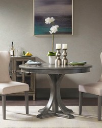 | Madison Park Signature See below 1 Dining Table: Dia 44" x 30.25"H Table Top (WxDxThick"): 44"W x 44"D x 3.5"H Clearance Under Table Top: 26.5" Leg Height: 27" Material: Poplar wood, MDF / PB + veneer top & panels Wood Finish:Chardon Grey Traditional Style Includes 1 Piece(s) Wipe clean with damp cloth Gather round the Madison Park Signature Helena Round Dining Table. Featuring a grey wood finish with distressed edge detail, this round dining table adds a subtle elegance to your kitchen. Assembly is required. |