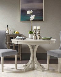 | Madison Park Signature See below 1 Dining Table: Dia. 44" x 30.25"H Table Top Size: 44"W x 44"L x 3.5"T Leg Size: 27"W x 26.75"H Clearance Under Table Top: 26.5"H Maximum Weight Capacity (Surfaces): 100LBS Material:MDF with solid wood veneer top, solid wood legs Top Material: Wood Veneer and MDF Base Material: Wood Top Finish: Antique Cream Base Finish: Antique Cream Wood Construction Type: Solid and manufactured wood Traditional Style Includes 1 Piece(s) Wipe Clean with Damp Cloth Make a statement in your dining room with the Madison Park Signature Helena Round Dining Table. This table features a wood veneer table top and solid wood pedestal legs. To accentuate the curves of the table it is coated in an antique cream finish. The round table seats four people comfortably. Leg assembly required, tools included. |