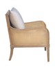 | Martha Stewart See below Overall: 28"W x 29"D x 32.5"H Seat: 24.5"W x 19"D x 18.5"H Back Rest Size (without back cushion): 21"W x 14"H Back Rest Size (with back cushion): 21"W x 16.5"H Arm Size: 24.5"W x 24" H Leg Height: 10"H Back Cushion: 21"W x 16.5"H x 4"T Weight C Frame Composition: Solid wood and plywood Leg Material: Solid wood Wood Finish: Reclaimed Natural Fabric Composition: 100% Polyester Cushion or Upholstery Fill Material: Foam Arm Material: Solid wood and synthetic cane Traditional Style Includes 1 Piece(s) • To prevent fading, keep fabric out of direct sunlight. • Blot spills immediately with a clean, colorfast towel or sponge. Unveiling the Morgan Accent Chair from Martha Stewart's Lily Pond collection—an embodiment of tasteful luxury. Crafted with a solid wood frame in a reclaimed natural finish and adorned with double-layer synthetic cane on the arms and back for added durability, this chair radiates sophistication while ensuring lasting elegance. Its upholstered seat and back cushion promise a plush repose, while the gracefully curved arms exude elegance. Complemented by a removable back pillow for tailored comfort and adjustable levelers on the front legs for stability, the Morgan Accent Chair epitomizes refined opulence, inviting you to indulge in a world of unparalleled comfort and sophistication. |