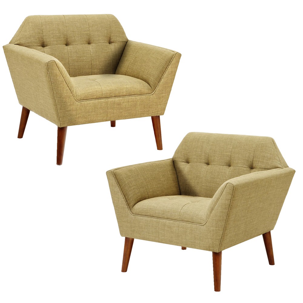 Accent your living area with the mid-century allure of INK+IVY’s Newport Lounge Chair. The tight back and seat offers extra plush comfortable seating and features a clean tailored look accented with button tufting details. Textured upholstery and a pecan finish on the tapered wood legs gives this lounge chair a warm contrast and alluring appeal. With its beautiful design and small silhouette, this mid-century lounge chair is sure to make a statement in your living room. Leg assembly is required.