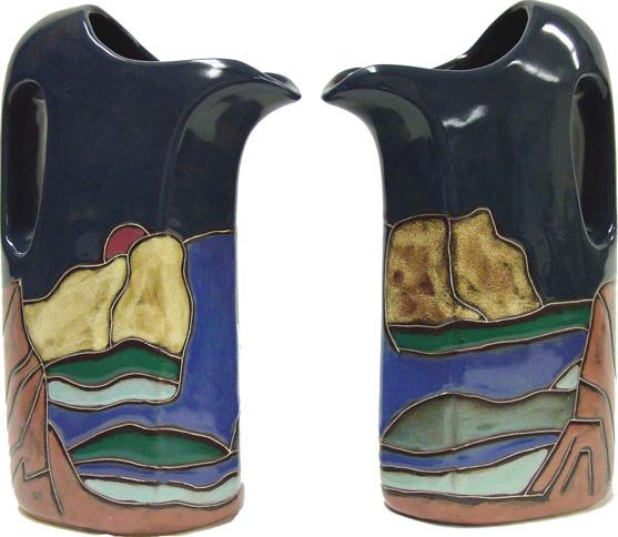 Maras original designs are hand-engraved and hand-painted with glazes on uniquely shaped stoneware pieces. Her functional table art ranges from over 100 whimsical mugs to thirteen complete dinnerware sets and distinctive home furnishings.