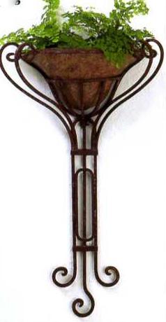 | Brown Taupe Iron Wall Planter with Removable Faux Finish Tole Liner |