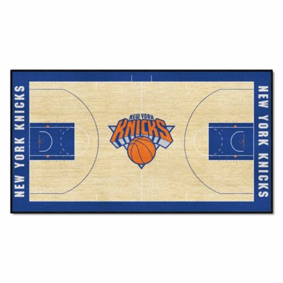 | New York Knicks Court Runner Rug - 24in. x 44in. 9 Ounce, 100 % Nylon Face Recycled vinyl backing for a durable and longer-lasting product Machine made and tufted in the USA Non-skid backing with serged borders for added durability Machine washable; vacuum regularly and spot clean for any easy and quick clean Officially licensed and chromojet-printed in true team colors for vibrant, lasting color NBA - New York Knicks in New York NBA National Basketball Association |