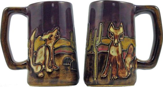 | A coyote howls at the moon on this 16oz stein.MARA STONEWARE A very durable material, Stoneware will last for years while keeping its original beauty. Each piece is fired twice at a high temperature and finished by hand. Minor imperfections are a common characteristic of hand-finished stoneware products.