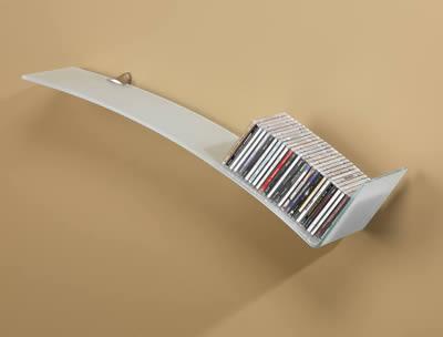 curve and vertical tab to support books, CD's, and DVD's without the need of
