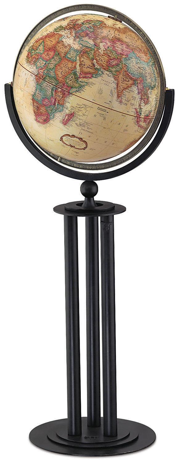 | Since ancient times, the column has stood as a functional and decorative standard. Designer Tom Torrens has fashioned an all-metal globe base reminiscent of that form, yet crafted to reflect modern design. History, architecture, and culture come together in a unique way with this 16" diameter antique-ocean globe. Designed by Tom Torrens. |
