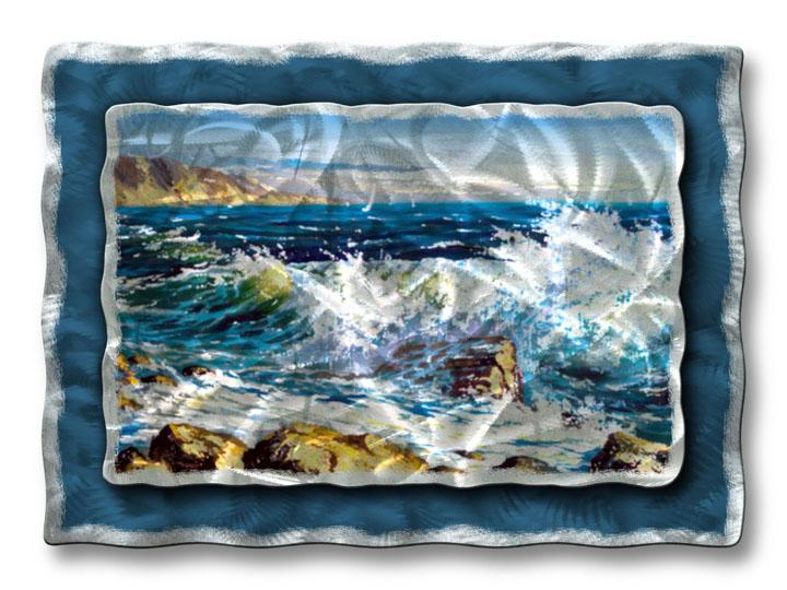 | Artist: Ash Carl Designs Year: 2010 Layers: 2 Layers of Metal - 1 Back and 1 Front Create a splash in your decor with this Crashing Waves metal wall hanging. Consisting of two metal layers with a swirling hand-sanded finish that offers an astonishing three dimensional effect. Adding this piece to any room will instantly liven your decor. Certificate of Authenticity Included. |