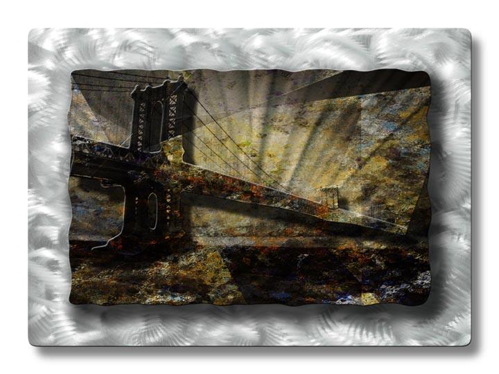 | Artist: Ash Carl Designs Year: 2010 Layers: 3 Layers - 1 Back, 1 Middle and 1 Front Add some creative shimmering excitement to your walls with this decorative Brilliant Bridge metal wall sculpture. This beautiful illuminated metal wall hanging consists of 2 colorful painted metal layers comprised of 2 metal panels that will liven up any homes decor. Each metal artwork has an individually hand sanded design that will display a vibrant three dimensional effect bringing the walls of any home to life. Certificate of Authenticity Included. |