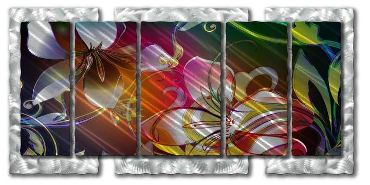 | Artist: Ash Carl Designs Year: 2010 Layers: 2 Layers of Metal - 1 Back and 1 Front Step into a tropical paradise with our Floral Destination metal wall sculpture. This vibrant and colorful metal wall hanging consists of two colorful painted metal layers that will brighten up any homes decor. Each metal artwork has an individually hand sanded design that will display a vibrant three dimensional effect bringing the walls of any home to life. Certificate of Authenticity Included. |
