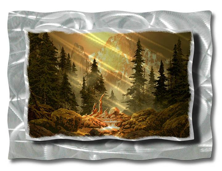 Add a shimmering touch of color and wonder with this Hide and Peak metal wall art on any wall in your home. This beautiful illuminated metal wall hanging consists of two colorful painted metal layers that will liven up any homes decor. Each metal artwork has an individually hand sanded design that will display a vibrant three dimensional effect bringing the walls of any home to life.