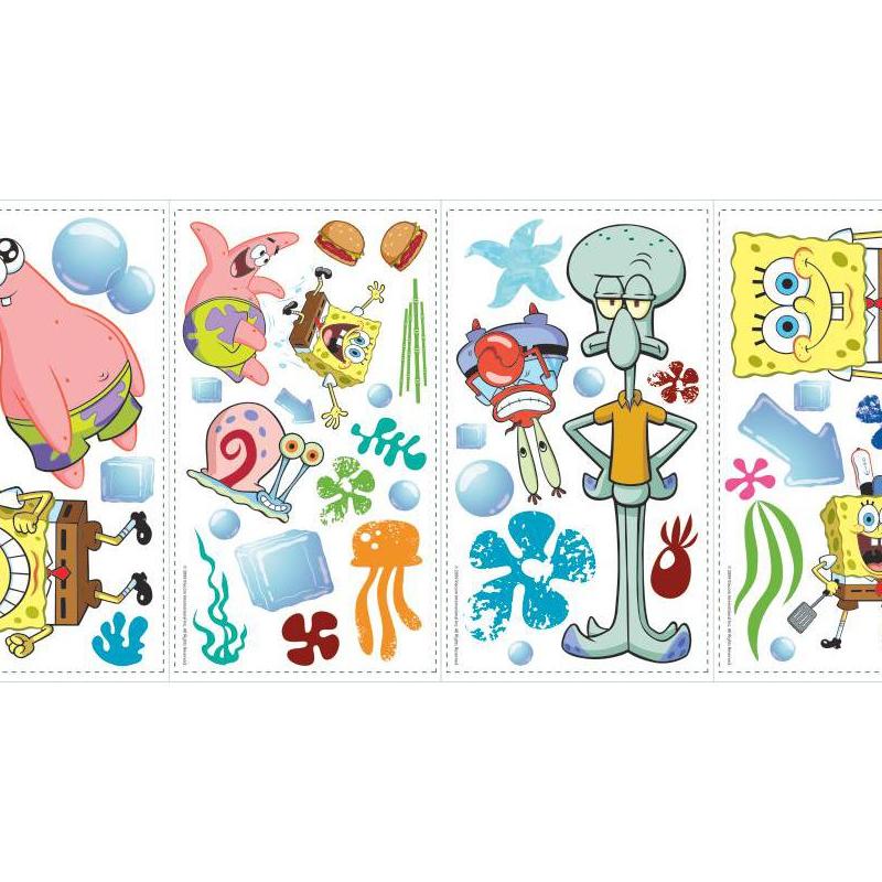 | He may normally live in a pineapple under the sea, but now Spongebob Squarepants and his friends can live on your walls, too! This set of fun and colorful wall decals includes Spongebob, Patrick, Mr. Krabs, Squidward, Plankton, and even Gary. We've also thrown in some bubbles, sea grass, and other fun designs that will help you complete a full scene on your wall. 30 decals total |
