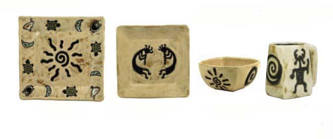 Maras original designs are hand-engraved and hand-painted with glazes on uniquely shaped stoneware pieces. Her functional table art ranges from over 100 whimsical mugs to thirteen complete dinnerware sets and distinctive home furnishings.