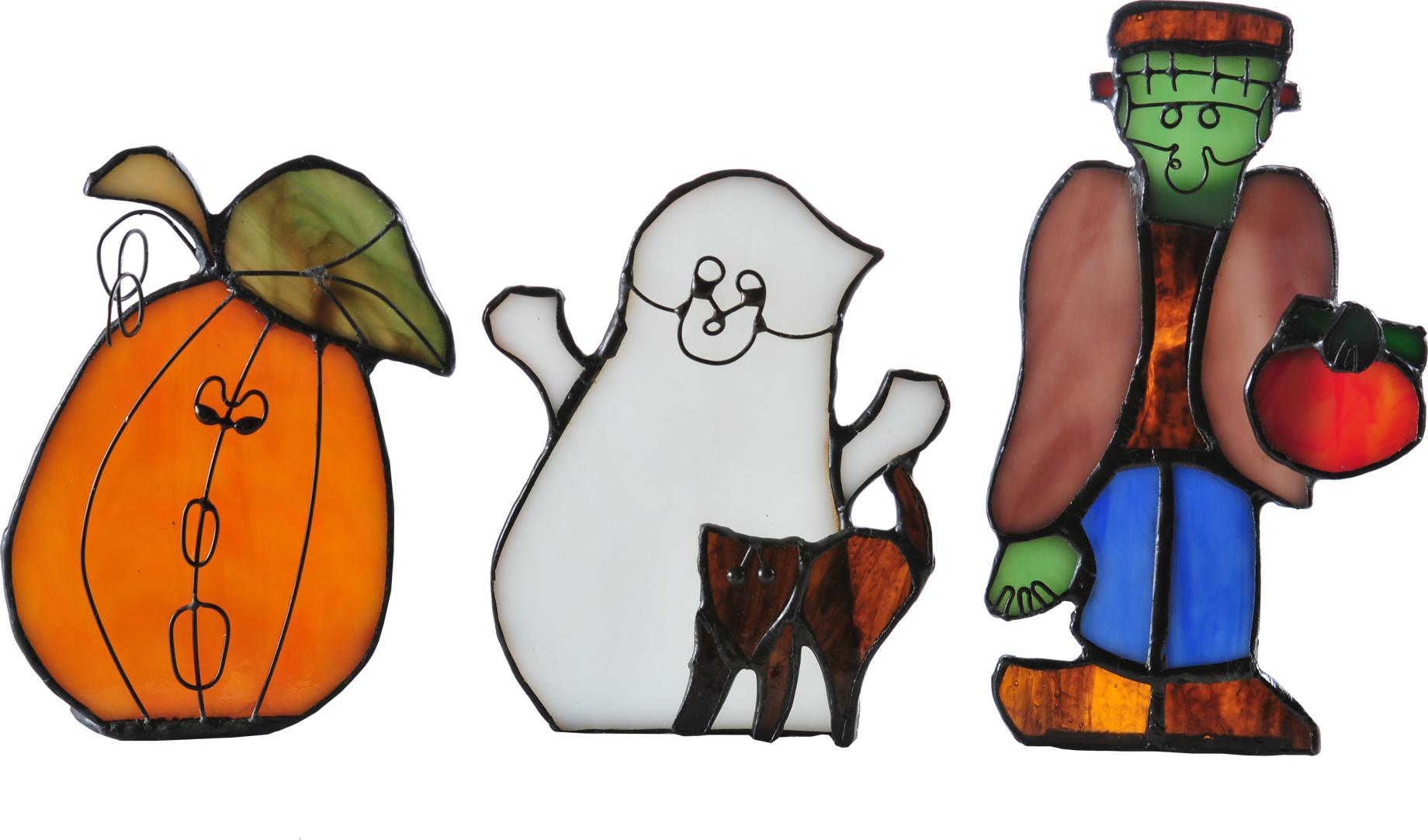 | Add A Festive Spirit To Your Home During The October Holiday With Our Adorable Halloween Tea Lights. Colorful Stained Glass Home Accents For Halloween And Throughout The Autumn Season. These Lighted Figures Depict A Friendly Pumpkin, A White Ghost With Black Cat, And Frankenstein. Handcrafted Utilizing The World-Famous Copperfoil Construction Process, Our Tea Lights Are The Ideal Choice For Gifts, Home Decor And Party Decorations. Meyda Tiffany CANDLE HOLDERS |