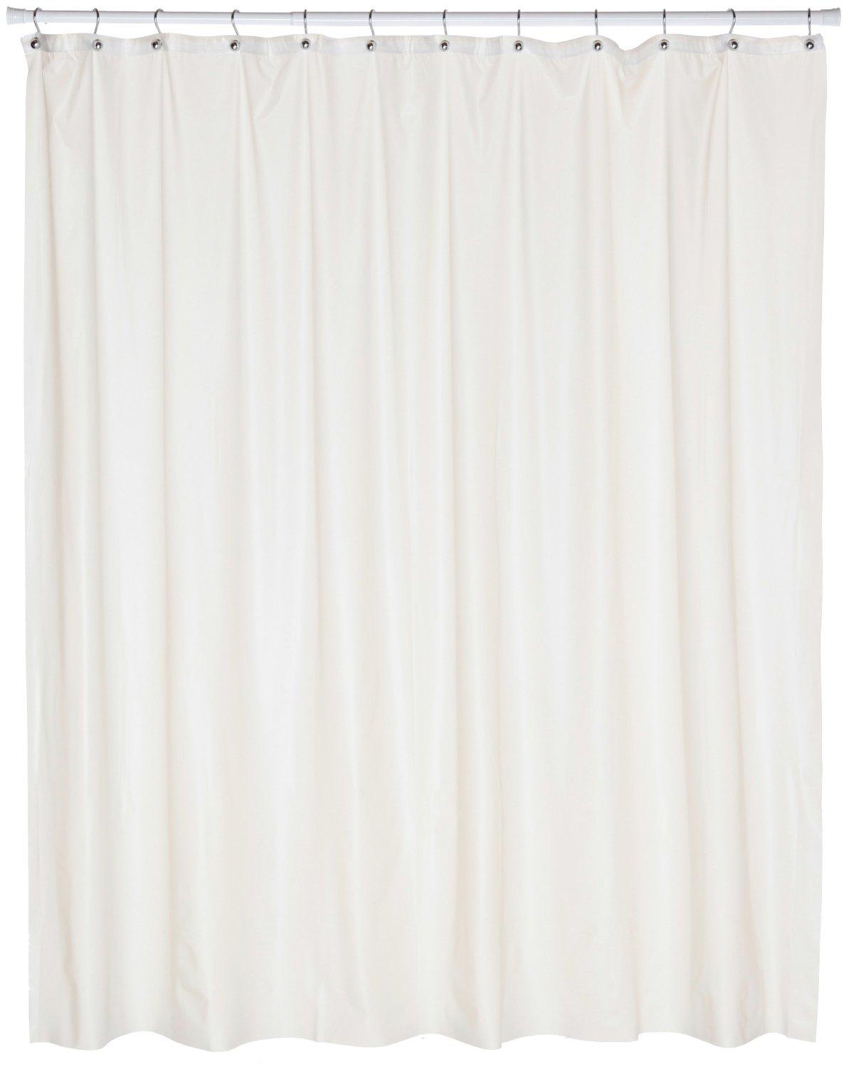 | Standard Heavy Duty Vinyl Shower Curtain Liner. 10 Gauge Vinyl with Quality, Reinforced Metal Grommets and a Reinforced Mesh Header. Resists: