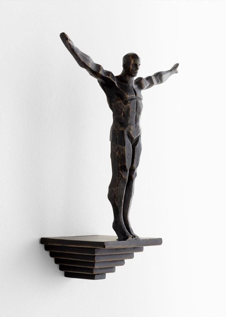 | Graceful shape of a man poised to dive perches on a wall shelf. |