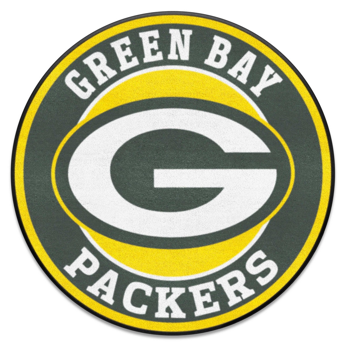 | Green Bay Packers Roundel Rug - 27in. Diameter 9 Ounce, 100 % Nylon Face Recycled vinyl backing for a durable and longer-lasting product Machine made and tufted in the USA Non-skid backing with taped borders for added durability Machine washable; vacuum regularly and spot clean for any easy and quick clean Officially licensed and chromojet-printed in true team colors for vibrant, lasting color NFL - Green Bay Packers in Wisconsin NFL National Football League |